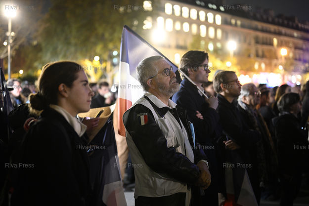 Légende : Dix ans après les attentats du 13 novembre 2015, les plus meurtriers jamais perpétrés en France, des parisiens se rassemblent Place de la République pour suivre la cérémonie d'hommage retransmise sur grand écran /// Ten years after the November 13, 2015 attacks, the deadliest ever perpetrated in France, Parisians gathered at Place de la République to watch the memorial ceremony broadcast on a large screen - Paris - 13/11/2025 - Photo © Lionel Préau +33 (0)6 68 12 83 77