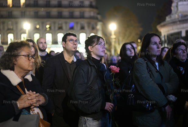 Légende : Dix ans après les attentats du 13 novembre 2015, les plus meurtriers jamais perpétrés en France, des parisiens se rassemblent Place de la République pour suivre la cérémonie d'hommage retransmise sur grand écran /// Ten years after the November 13, 2015 attacks, the deadliest ever perpetrated in France, Parisians gathered at Place de la République to watch the memorial ceremony broadcast on a large screen - Paris - 13/11/2025 - Photo © Lionel Préau +33 (0)6 68 12 83 77