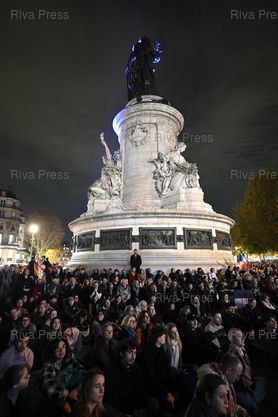 Légende : Dix ans après les attentats du 13 novembre 2015, les plus meurtriers jamais perpétrés en France, des parisiens se rassemblent Place de la République pour suivre la cérémonie d'hommage retransmise sur grand écran /// Ten years after the November 13, 2015 attacks, the deadliest ever perpetrated in France, Parisians gathered at Place de la République to watch the memorial ceremony broadcast on a large screen - Paris - 13/11/2025 - Photo © Lionel Préau +33 (0)6 68 12 83 77