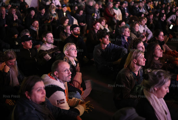 Légende : Dix ans après les attentats du 13 novembre 2015, les plus meurtriers jamais perpétrés en France, des parisiens se rassemblent Place de la République pour suivre la cérémonie d'hommage retransmise sur grand écran /// Ten years after the November 13, 2015 attacks, the deadliest ever perpetrated in France, Parisians gathered at Place de la République to watch the memorial ceremony broadcast on a large screen - Paris - 13/11/2025 - Photo © Lionel Préau +33 (0)6 68 12 83 77