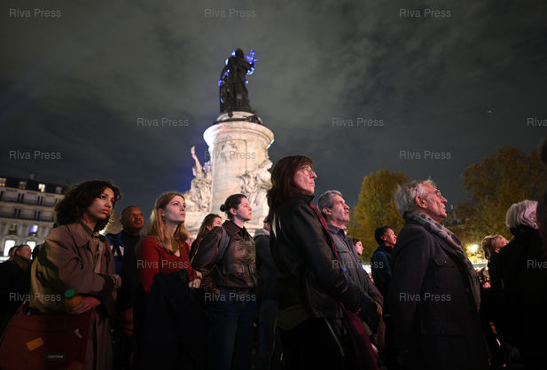 Légende : Dix ans après les attentats du 13 novembre 2015, les plus meurtriers jamais perpétrés en France, des parisiens se rassemblent Place de la République pour suivre la cérémonie d'hommage retransmise sur grand écran /// Ten years after the November 13, 2015 attacks, the deadliest ever perpetrated in France, Parisians gathered at Place de la République to watch the memorial ceremony broadcast on a large screen - Paris - 13/11/2025 - Photo © Lionel Préau +33 (0)6 68 12 83 77