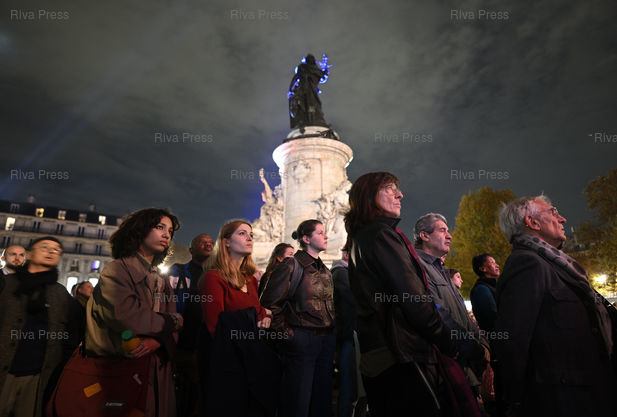 Légende : Dix ans après les attentats du 13 novembre 2015, les plus meurtriers jamais perpétrés en France, des parisiens se rassemblent Place de la République pour suivre la cérémonie d'hommage retransmise sur grand écran /// Ten years after the November 13, 2015 attacks, the deadliest ever perpetrated in France, Parisians gathered at Place de la République to watch the memorial ceremony broadcast on a large screen - Paris - 13/11/2025 - Photo © Lionel Préau +33 (0)6 68 12 83 77