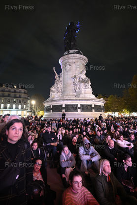 Légende : Dix ans après les attentats du 13 novembre 2015, les plus meurtriers jamais perpétrés en France, des parisiens se rassemblent Place de la République pour suivre la cérémonie d'hommage retransmise sur grand écran /// Ten years after the November 13, 2015 attacks, the deadliest ever perpetrated in France, Parisians gathered at Place de la République to watch the memorial ceremony broadcast on a large screen - Paris - 13/11/2025 - Photo © Lionel Préau +33 (0)6 68 12 83 77