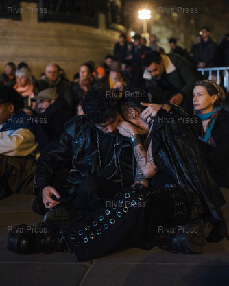 Légende : Plusieurs milliers de Parisiens se rassemblent sur la place de la République, à Paris, pour assister à la retransmission de la cérémonie de commémoration des dix ans des attentas du 13 novembre 2015. 13 novembre 2025. © Lucien Lung / Riva-Press *** Several thousand Parisians gathered in the Place de la République in Paris to watch the live broadcast of the ceremony commemorating the tenth anniversary of the November 13, 2015 attacks. November 13, 2025. © Lucien Lung / Riva-Press