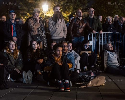Légende : Plusieurs milliers de Parisiens se rassemblent sur la place de la République, à Paris, pour assister à la retransmission de la cérémonie de commémoration des dix ans des attentas du 13 novembre 2015. 13 novembre 2025. © Lucien Lung / Riva-Press *** Several thousand Parisians gathered in the Place de la République in Paris to watch the live broadcast of the ceremony commemorating the tenth anniversary of the November 13, 2015 attacks. November 13, 2025. © Lucien Lung / Riva-Press