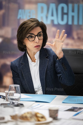 Légende : Rachida Dati, candidate au poste de Maire de Paris pour les elections municipales de 2026, repond aux questions de journalistes dans son QG de campagne du 12eme arrondissement de la capitale. Le 21/11/2025 /// Rachida Dati, candidate for Mayor of Paris in the 2026 municipal elections, answers journalists' questions at her campaign headquarters in the 12th arrondissement of the capital. On November 21, 2025 /// PHOTO Vincent Boisot