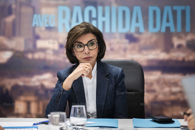 Légende : Rachida Dati, candidate au poste de Maire de Paris pour les elections municipales de 2026, repond aux questions de journalistes dans son QG de campagne du 12eme arrondissement de la capitale. Le 21/11/2025 /// Rachida Dati, candidate for Mayor of Paris in the 2026 municipal elections, answers journalists' questions at her campaign headquarters in the 12th arrondissement of the capital. On November 21, 2025 /// PHOTO Vincent Boisot