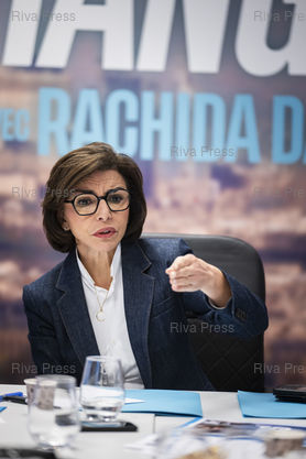 Légende : Rachida Dati, candidate au poste de Maire de Paris pour les elections municipales de 2026, repond aux questions de journalistes dans son QG de campagne du 12eme arrondissement de la capitale. Le 21/11/2025 /// Rachida Dati, candidate for Mayor of Paris in the 2026 municipal elections, answers journalists' questions at her campaign headquarters in the 12th arrondissement of the capital. On November 21, 2025 /// PHOTO Vincent Boisot