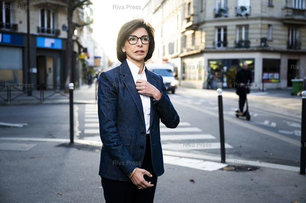 Légende : Rachida Dati, candidate au poste de Maire de Paris pour les elections municipales de 2026, pose dans une rue du 12eme arrondissement a proximite de son QG de campagne. Le 21/11/2025 /// Rachida Dati, candidate for Mayor of Paris in the 2026 municipal elections, poses in a street in the 12th arrondissement near her campaign headquarters. On November 21, 2025 /// PHOTO Vincent Boisot