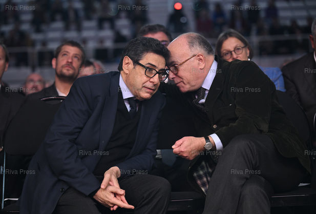 Légende : Bernard Cazeneuve, ancien premier ministre, réunit la "gauche de gouvernement" lors d'une réunion de son mouvement "La Convention" avec l'objectif d'offrir une alternative à l'extrême droite. Philippe Aghion, prix Nobel d’économie, et Bernard Cazeneuve /// Bernard Cazeneuve, former prime minister, is bringing together the "governing left" at a meeting of his movement "La Convention" with the aim of offering an alternative to the far right. Philippe Aghion, Nobel Prize winners in economics, and Bernard Cazeneuve - Pontoise - 16/11/2025 - Photo © Lionel Préau +33 (0)6 68 12 83 77