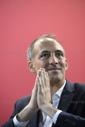 Légende : Bernard Cazeneuve, ancien premier ministre, réunit la "gauche de gouvernement" lors d'une réunion de son mouvement "La Convention" avec l'objectif d'offrir une alternative à l'extrême droite. Raphaël Glucksmann, député européen /// Bernard Cazeneuve, former prime minister, is bringing together the "governing left" at a meeting of his movement "La Convention" with the aim of offering an alternative to the far right. Raphaël Glucksmann, MEP - Pontoise - 16/11/2025 - Photo © Lionel Préau +33 (0)6 68 12 83 77