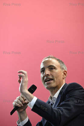 Légende : Bernard Cazeneuve, ancien premier ministre, réunit la "gauche de gouvernement" lors d'une réunion de son mouvement "La Convention" avec l'objectif d'offrir une alternative à l'extrême droite. Raphaël Glucksmann, député européen /// Bernard Cazeneuve, former prime minister, is bringing together the "governing left" at a meeting of his movement "La Convention" with the aim of offering an alternative to the far right. Raphaël Glucksmann, MEP - Pontoise - 16/11/2025 - Photo © Lionel Préau +33 (0)6 68 12 83 77