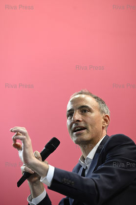 Légende : Bernard Cazeneuve, ancien premier ministre, réunit la "gauche de gouvernement" lors d'une réunion de son mouvement "La Convention" avec l'objectif d'offrir une alternative à l'extrême droite. Raphaël Glucksmann, député européen /// Bernard Cazeneuve, former prime minister, is bringing together the "governing left" at a meeting of his movement "La Convention" with the aim of offering an alternative to the far right. Raphaël Glucksmann, MEP - Pontoise - 16/11/2025 - Photo © Lionel Préau +33 (0)6 68 12 83 77