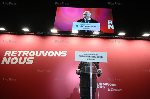 Légende : Bernard Cazeneuve, ancien premier ministre, réunit la "gauche de gouvernement" lors d'une réunion de son mouvement "La Convention" avec l'objectif d'offrir une alternative à l'extrême droite /// Bernard Cazeneuve, former prime minister, is bringing together the "governing left" at a meeting of his movement "La Convention" with the aim of offering an alternative to the far right - Pontoise - 16/11/2025 - Photo © Lionel Préau +33 (0)6 68 12 83 77