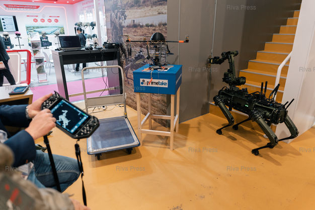 Milipol Paris est le plus grand evenement mondial consacre a la securite interieure (armes, armements, munitions, equipements de protection et equipements pour la police et les forces armees). Villepinte, 21 novembre 2025. Teo Manisier / Riva Press /// A four-legged robot dog at the booth of American manufacturer Ghostrobotics at the 24th edition of the international exhibition on internal security in the United States--MILIPOL PARIS 2025, at the Paris-Nord-Villepinte Exhibition Center.