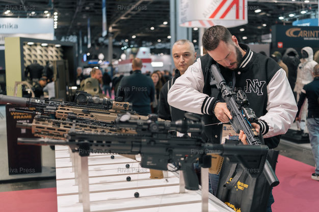 Milipol Paris is the world's largest event dedicated to internal security (weapons, armaments, ammunition, protective equipment, and equipment for the police and armed forces). Villepinte, November 21, 2025. Teo Manisier / Riva Press ///