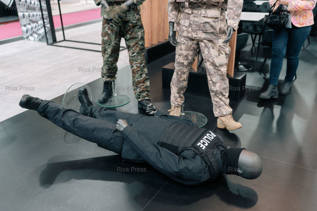 Milipol Paris est le plus grand evenement mondial consacre a la securite interieure (armes, armements, munitions, equipements de protection et equipements pour la police et les forces armees). Villepinte, 21 novembre 2025. Teo Manisier / Riva Press /// Mannequins at the 24th edition of the international exhibition on internal security for states - MILIPOL PARIS 2025, at the Paris-Nord-Villepinte Exhibition Center.