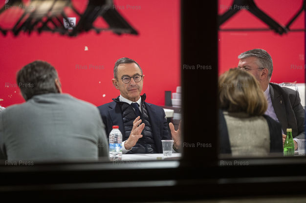 Légende : Dans le cadre d'un deplacement de deux jours en Eure-et-Loire, le president des Republicains Bruno Retailleau rencontre des elus du departement a l'Espace Hugo de Cherisy (pres de Dreux) avant une reunion publique devant quelques centaines de sympathisants . Le 20/11/2025 /// During a two-day trip to Eure-et-Loire, the president of Les Republicains, Bruno Retailleau, met with elected officials from the department at the Espace Hugo in Cherisy (near Dreux) before a public meeting in front of several hundred supporters. On November 20, 2025 /// PHOTO Vincent Boisot