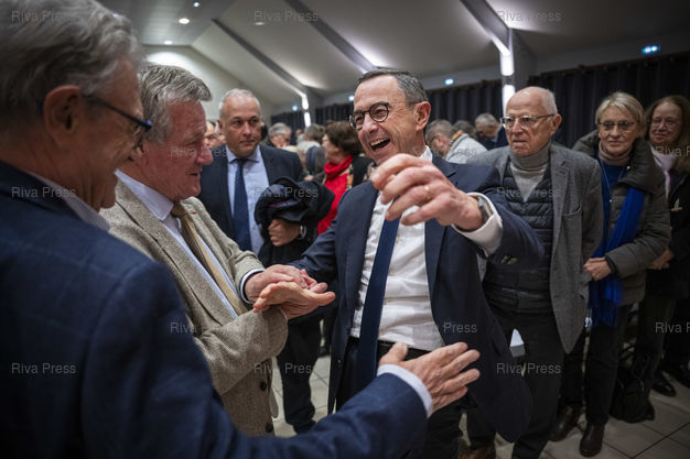 Caption : Dans le cadre d'un deplacement de deux jours en Eure-et-Loire, le president des Republicains Bruno Retailleau participe a une reunion publique devant quelques centaines de sympathisants a l'Espace Hugo de Cherisy, pres de Dreux. Le 20/11/2025 // During a two-day trip to Eure-et-Loire, the president of Les Republicains, Bruno Retailleau, is participating in a public meeting in front of a few hundred supporters at the Espace Hugo in Cherisy, near Dreux. On November 20, 2025 /// PHOTO Vincent Boisot