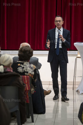Légende : Dans le cadre d'un deplacement de deux jours en Eure-et-Loire, le president des Republicains Bruno Retailleau participe a une reunion publique devant quelques centaines de sympathisants a l'Espace Hugo de Cherisy, pres de Dreux. Le 20/11/2025 // During a two-day trip to Eure-et-Loire, the president of Les Republicains, Bruno Retailleau, is participating in a public meeting in front of a few hundred supporters at the Espace Hugo in Cherisy, near Dreux. On November 20, 2025 /// PHOTO Vincent Boisot