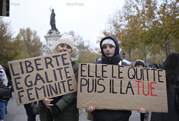 Légende : Manifestation à l'occasion de la Journée internationale de lutte contre les violences faites aux femmes, alors que le nombre de féminicides conjugaux a augmenté de 11 % entre 2023 et 2024, avec 107 femmes tuées par leur conjoint ou ex-conjoint /// Demonstration on the occasion of the International Day for the Elimination of Violence against Women, at a time when the number of domestic femicides increased by 11% between 2023 and 2024, with 107 women killed by their partner or ex-partner - Paris - 22/11/2025 - Photo © Lionel Préau +33 (0)6 68 12 83 77