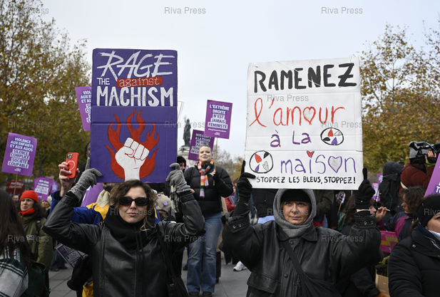 Légende : Manifestation à l'occasion de la Journée internationale de lutte contre les violences faites aux femmes, alors que le nombre de féminicides conjugaux a augmenté de 11 % entre 2023 et 2024, avec 107 femmes tuées par leur conjoint ou ex-conjoint /// Demonstration on the occasion of the International Day for the Elimination of Violence against Women, at a time when the number of domestic femicides increased by 11% between 2023 and 2024, with 107 women killed by their partner or ex-partner - Paris - 22/11/2025 - Photo © Lionel Préau +33 (0)6 68 12 83 77