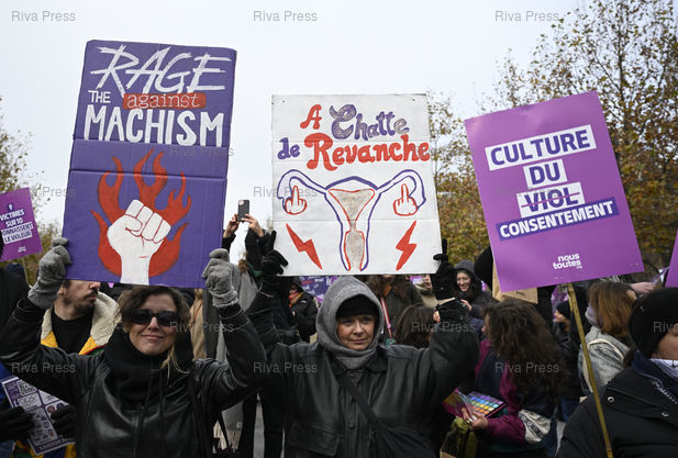 Caption : Manifestation à l'occasion de la Journée internationale de lutte contre les violences faites aux femmes, alors que le nombre de féminicides conjugaux a augmenté de 11 % entre 2023 et 2024, avec 107 femmes tuées par leur conjoint ou ex-conjoint /// Demonstration on the occasion of the International Day for the Elimination of Violence against Women, at a time when the number of domestic femicides increased by 11% between 2023 and 2024, with 107 women killed by their partner or ex-partner - Paris - 22/11/2025 - Photo © Lionel Préau +33 (0)6 68 12 83 77