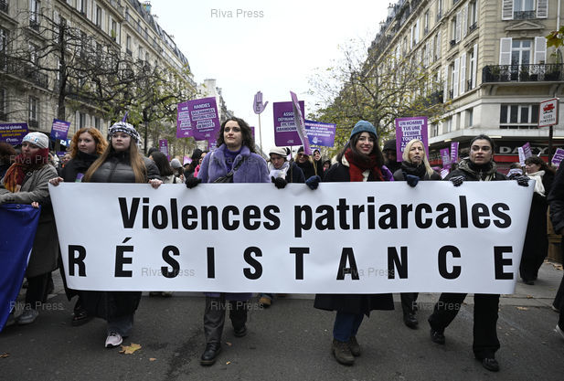 Légende : Manifestation à l'occasion de la Journée internationale de lutte contre les violences faites aux femmes, alors que le nombre de féminicides conjugaux a augmenté de 11 % entre 2023 et 2024, avec 107 femmes tuées par leur conjoint ou ex-conjoint /// Demonstration on the occasion of the International Day for the Elimination of Violence against Women, at a time when the number of domestic femicides increased by 11% between 2023 and 2024, with 107 women killed by their partner or ex-partner - Paris - 22/11/2025 - Photo © Lionel Préau +33 (0)6 68 12 83 77