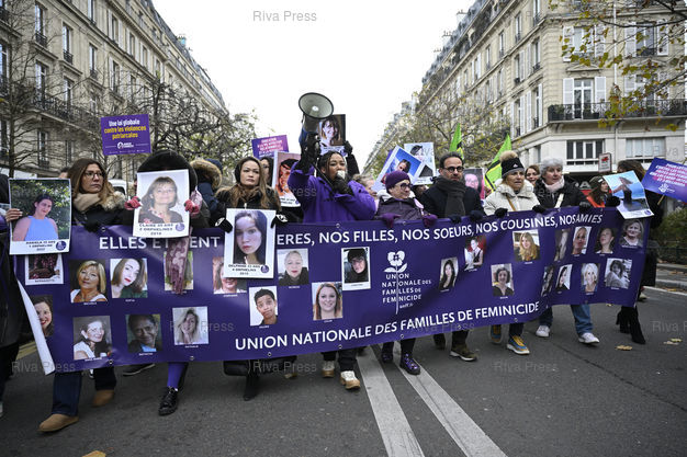 Légende : Manifestation à l'occasion de la Journée internationale de lutte contre les violences faites aux femmes, alors que le nombre de féminicides conjugaux a augmenté de 11 % entre 2023 et 2024, avec 107 femmes tuées par leur conjoint ou ex-conjoint. Union nationale des familles de féminicide /// Demonstration on the occasion of the International Day for the Elimination of Violence against Women, at a time when the number of domestic femicides increased by 11% between 2023 and 2024, with 107 women killed by their partner or ex-partner. National Union of Families of Femicide Victims - Paris - 22/11/2025 - Photo © Lionel Préau +33 (0)6 68 12 83 77