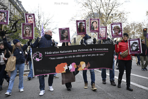 Légende : Manifestation à l'occasion de la Journée internationale de lutte contre les violences faites aux femmes, alors que le nombre de féminicides conjugaux a augmenté de 11 % entre 2023 et 2024, avec 107 femmes tuées par leur conjoint ou ex-conjoint. Fédération nationale des victimes de féminicides /// Demonstration on the occasion of the International Day for the Elimination of Violence against Women, at a time when the number of domestic femicides increased by 11% between 2023 and 2024, with 107 women killed by their partner or ex-partner. National Federation of Victims of Femicide - Paris - 22/11/2025 - Photo © Lionel Préau +33 (0)6 68 12 83 77