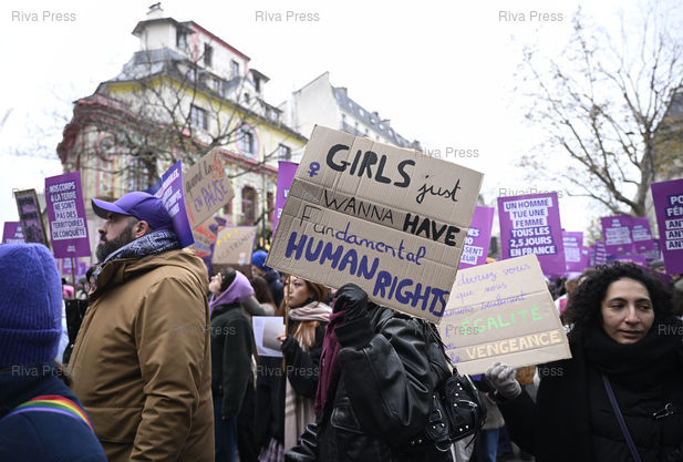 Légende : Manifestation à l'occasion de la Journée internationale de lutte contre les violences faites aux femmes, alors que le nombre de féminicides conjugaux a augmenté de 11 % entre 2023 et 2024, avec 107 femmes tuées par leur conjoint ou ex-conjoint. "Girls just wanna have fundamental human rights" /// Demonstration on the occasion of the International Day for the Elimination of Violence against Women, at a time when the number of domestic femicides increased by 11% between 2023 and 2024, with 107 women killed by their partner or ex-partner. "Girls just wanna have fundamental human rights" - Paris - 22/11/2025 - Photo © Lionel Préau +33 (0)6 68 12 83 77