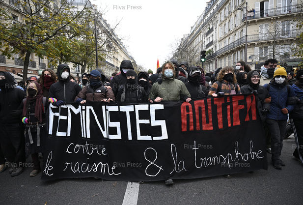 Légende : Manifestation à l'occasion de la Journée internationale de lutte contre les violences faites aux femmes, alors que le nombre de féminicides conjugaux a augmenté de 11 % entre 2023 et 2024, avec 107 femmes tuées par leur conjoint ou ex-conjoint. Féministes antifa /// Demonstration on the occasion of the International Day for the Elimination of Violence against Women, at a time when the number of domestic femicides increased by 11% between 2023 and 2024, with 107 women killed by their partner or ex-partner. Anti-fascist feminists - Paris - 22/11/2025 - Photo © Lionel Préau +33 (0)6 68 12 83 77