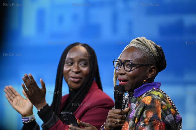 Légende : La France Insoumise lance sa campagne pour les élections municipales de 2026 lors d'une Convention. Diangou Traoré - Régine Komokoli-Nakoafio /// La France Insoumise launches its campaign for the 2026 municipal elections at a Convention. Diangou Traoré - Régine Komokoli-Nakoafio - Aubervilliers - 23/11/2025 - Photo © Lionel Préau +33 (0)6 68 12 83 77