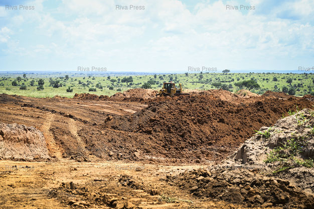 Légende : Des travaux d'excavation sont en cours dans la zone protegee du Parc National de Murchison Falls en Ouganda ou le groupe francais TotalEnergies exploite un forage petrolier dans le cadre du projet d'extraction Tilenga. Le 07/11/2024 // Excavation work is underway in the protected area of ??Murchison Falls National Park in Uganda, where the French group TotalEnergies is operating an oil well as part of the Tilenga extraction project. On November 7, 2024 /// PHOTO Vincent Boisot
