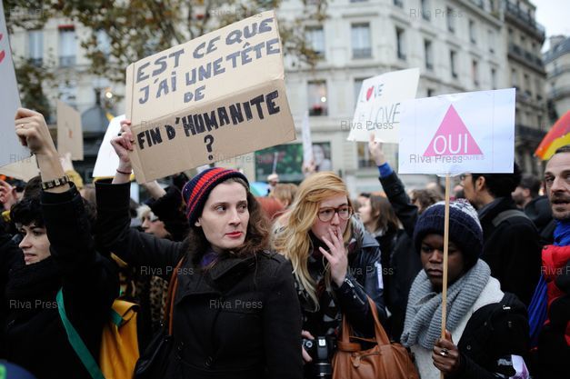 Légende : Manifestation nationale contre l'ouverture du mariage et de l'adoption aux couples homosexuels à l'appel du collectif "la Manif pour tous" - au départ de la place Denfert-Rochereau.
