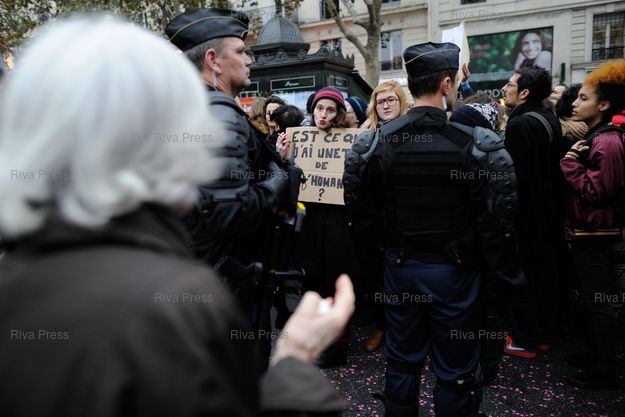 Des manifestants gays et lesbiennes manifestent au passage de la manif pour tous à Montparnasse - Paris - 17/11/2012 - Photo © Lionel Préau +33 (0)6 68 12 83 77