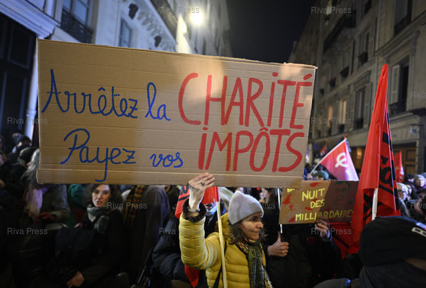 Légende : Rassemblement contre la "Nuit du Bien Commun", gala participatif cofondé par le milliardaire ultra-conservateur Pierre-Édouard Stérin, soutien de l’extrême-droite, qui a servi à financer des associations proches des réseaux catholiques réactionnaires /// Rally against the "Night of the Common Good", a participatory gala co-founded by the ultra-conservative billionaire Pierre-Édouard Stérin, a supporter of the far right, which was used to finance associations close to reactionary Catholic networks - Paris - 04/12/2025 - Photo © Lionel Préau +33 (0)6 68 12 83 77