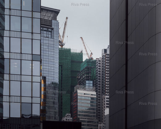 Légende : Echafaudage en bambou utilisé pour la restauration d'un immeuble, dans le quartier de Central, à Hong Kong, le 4 décembre 2025. © Lucien Lung / Riva Press *** Bamboo scaffolding used for the restoration of a building in the Central district of Hong Kong, December 4, 2025. © Lucien Lung / Riva Press
