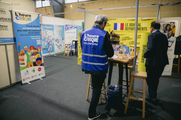 *** Albi, November 14, 2025 - At the L'Heure Civique stand during the 94th French Departments Conference. PHOTO: Vincent NGUYEN / Riva Press