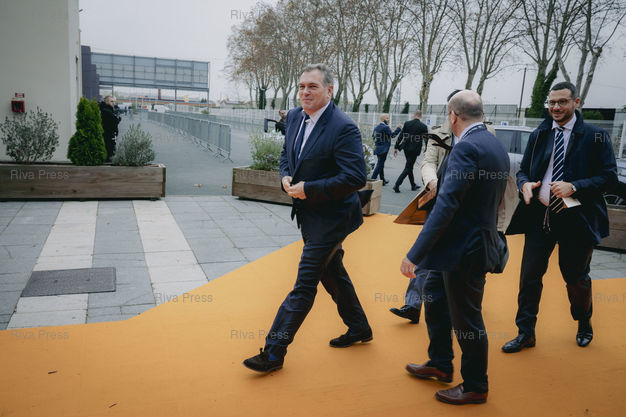 *** Albi, November 14, 2025 - Philippe Tabarot (C), Minister of Transportation arrives at the 94th Conference of French Departments. PHOTO: Vincent NGUYEN / Riva Press