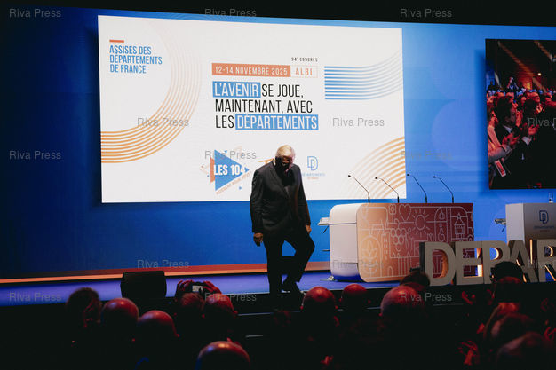 *** Albi, November 14, 2025 - François Sauvadet, President of Départements de France, leaves the stage after delivering a speech at the 94th Departments of France Conference. PHOTO: Vincent NGUYEN / Riva Press