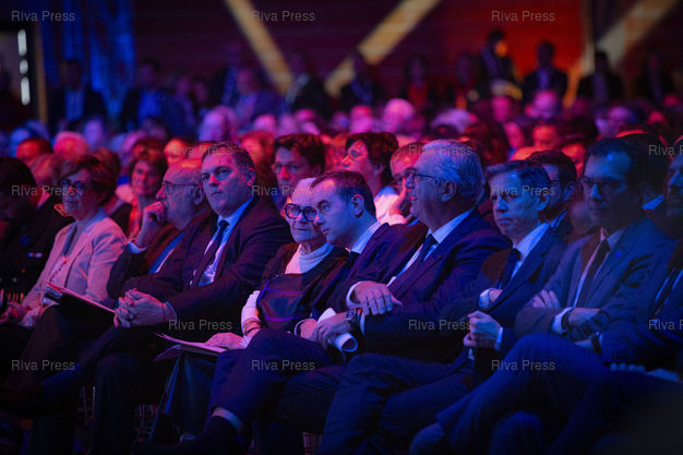 Légende : Albi, le 14 novembre 2025 - Le premier ministre Sébastien Lecornu (C) lors des 94èmes Assises de Départements de France. Avec Philippe Tabarot, ministre des Transports, Françoise Gatel, ministre de l'Aménagement du territoire et de la Décentralisation, François Sauvadet, président de Départements de France, Christophe Ramond, président du conseil départemental du Tarn et Jean-Pierre Farandou, ministre du Travail et des Solidarités. PHOTO: Vincent NGUYEN / Riva Press