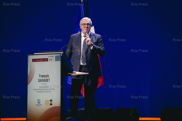 *** Albi, November 14, 2025 - François Sauvadet, President of Departments of France, delivers a speech at the 94th Departments of France Conference. PHOTO: Vincent NGUYEN / Riva Press