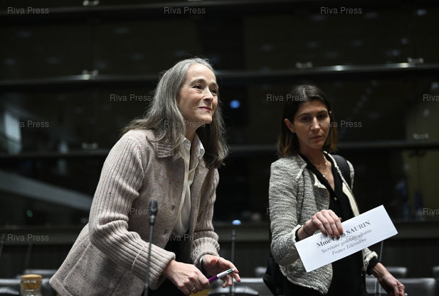 Légende : Delphine Ernotte, présidente de France Télévisions, est auditionnée par la Commission d'enquête parlementaire sur l'audiovisuel public. En présence de Livia Saurin, secrétaire générale adjointe de France TV /// Delphine Ernotte, president of France Télévisions, is being questioned by the Parliamentary Commission of Inquiry on Public Broadcasting. With Livia Saurin, deputy secretary general of France TV - Paris - 10/12/2025 - Photo © Lionel Préau +33 (0)6 68 12 83 77