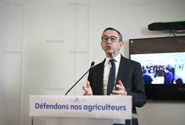 Légende : Les Républicains exposent les raisons pour lesquelles la France doit s'opposer à la ratification de l’accord de libre échange entre l'Union européenne et les états du Mercosur (Brésil, Argentine, Uruguay et Paraguay). Bruno Retailleau, president LR /// The Republicans outline the reasons why France must oppose the ratification of the free trade agreement between the European Union and the Mercosur states (Brazil, Argentina, Uruguay and Paraguay). Bruno Retailleau, President of LR - Paris - 15/12/2025 - Photo © Lionel Préau +33 (0)6 68 12 83 77