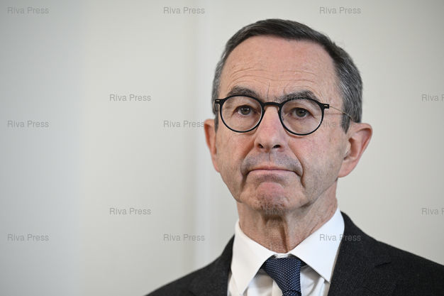 Caption : Les Républicains exposent les raisons pour lesquelles la France doit s'opposer à la ratification de l’accord de libre échange entre l'Union européenne et les états du Mercosur (Brésil, Argentine, Uruguay et Paraguay). Bruno Retailleau, president LR /// The Republicans outline the reasons why France must oppose the ratification of the free trade agreement between the European Union and the Mercosur states (Brazil, Argentina, Uruguay and Paraguay). Bruno Retailleau, President of LR - Paris - 15/12/2025 - Photo © Lionel Préau +33 (0)6 68 12 83 77