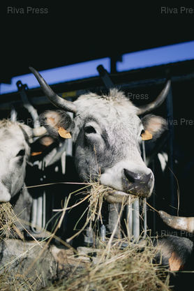 Légende : Montbel, le 18 décembre 2025 - Des vaches gasconnes dans l'exploitation de David Eychenne, paysan éleveur bovin en bio à Montbel dans l'Ariège et co-porte-parole de la Confédération Paysanne Occitanie. PHOTO: Vincent NGUYEN / Riva Press