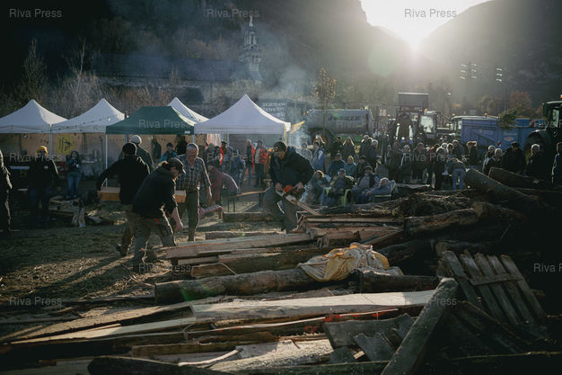 Légende : Tarascon-sur-Ariège, le 18 décembre 2025 - Les éleveurs et agriculteurs bloquent un rond-point sur la N20 à Tarascon-sur-Ariège pour protester contre le protocole imposant l'abattage du troupeau de bovins si un cas de DNC (Dermatose nodulaire contagieuse) est découvert. Un blocage intersyndical avec la Confédération Paysanne et la Coordination Rurale 09 qui dénoncent également le traité sur le Mercosur. PHOTO: Vincent NGUYEN / Riva Press