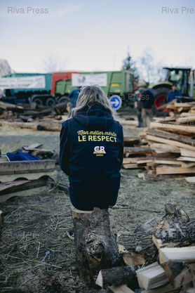 Légende : Tarascon-sur-Ariège, le 18 décembre 2025 - Une agricultrice membre de la Coordination Rurale 09. Les éleveurs et agriculteurs bloquent un rond-point sur la N20 à Tarascon-sur-Ariège pour protester contre le protocole imposant l'abattage du troupeau de bovins si un cas de DNC (Dermatose nodulaire contagieuse) est découvert. Un blocage intersyndical avec la Confédération Paysanne et la Coordination Rurale 09 qui dénoncent également le traité sur le Mercosur. PHOTO: Vincent NGUYEN / Riva Press