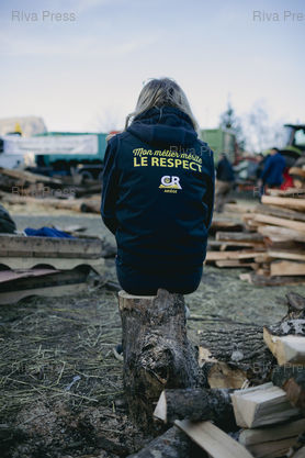 Légende : Tarascon-sur-Ariège, le 18 décembre 2025 - Une agricultrice membre de la Coordination Rurale 09. Les éleveurs et agriculteurs bloquent un rond-point sur la N20 à Tarascon-sur-Ariège pour protester contre le protocole imposant l'abattage du troupeau de bovins si un cas de DNC (Dermatose nodulaire contagieuse) est découvert. Un blocage intersyndical avec la Confédération Paysanne et la Coordination Rurale 09 qui dénoncent également le traité sur le Mercosur. PHOTO: Vincent NGUYEN / Riva Press